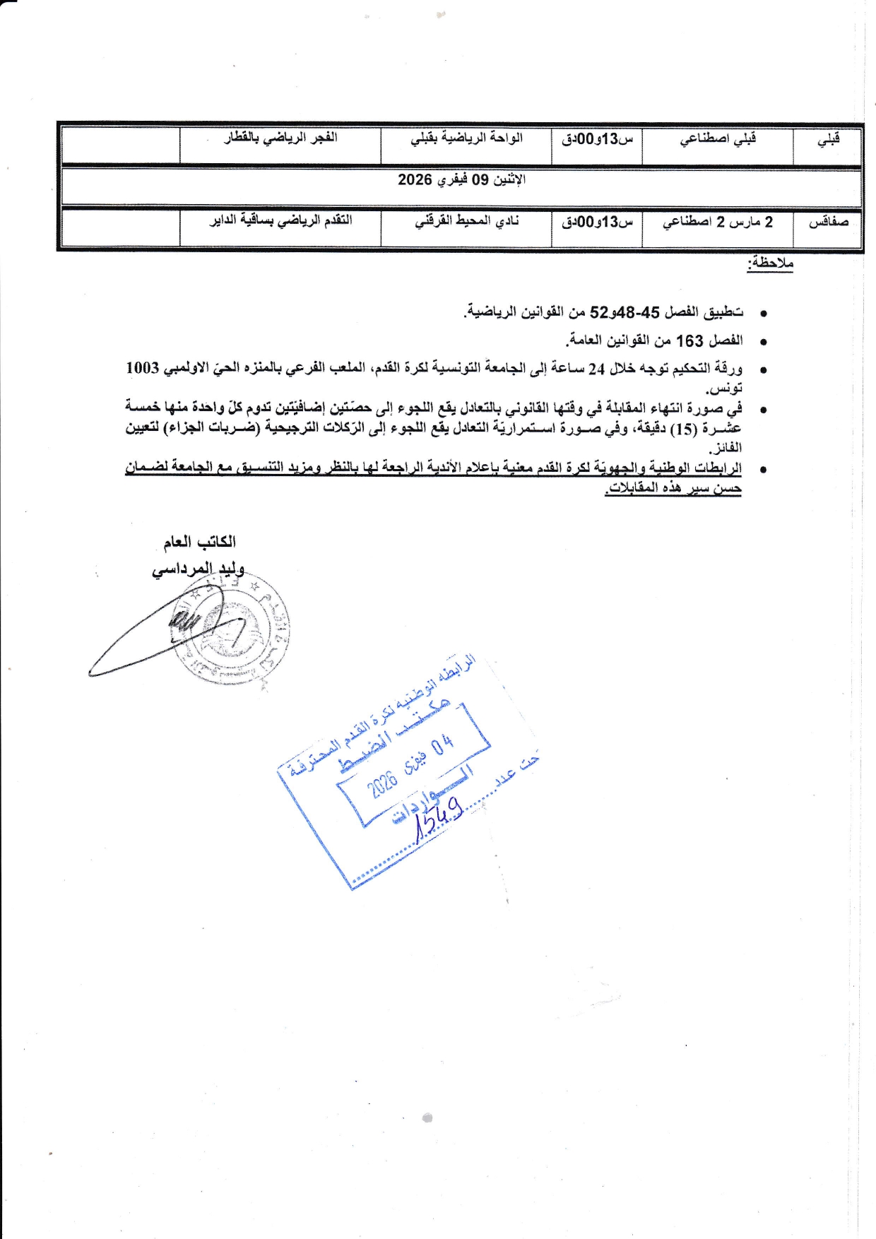 تعيينات مباريات الجولة التاسعة إياب لبطولة الرابطة « II »