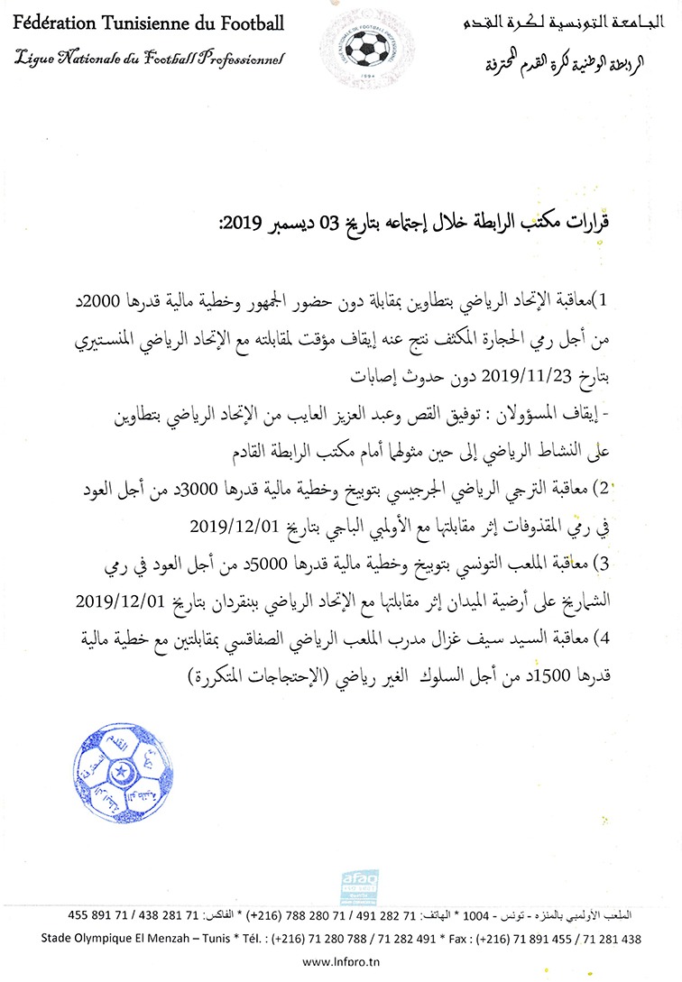 قرارات الهيئة المكلفة بتسيير شؤون الرابطة خلال إجتماعها بتاريخ 19 سبتمبر2025