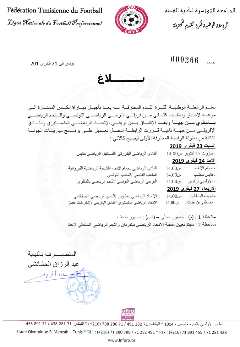 تعديل تعيينات مباريات الجولة 9 ذهاب لبطولة الرابطة « I »