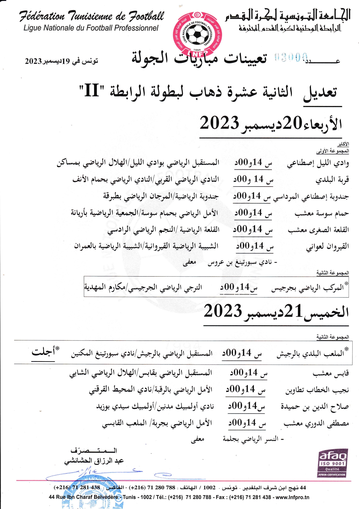 تعديل تعيينات مباريات الجولة 12 ذهاب لبطولة الرابطة الثانية