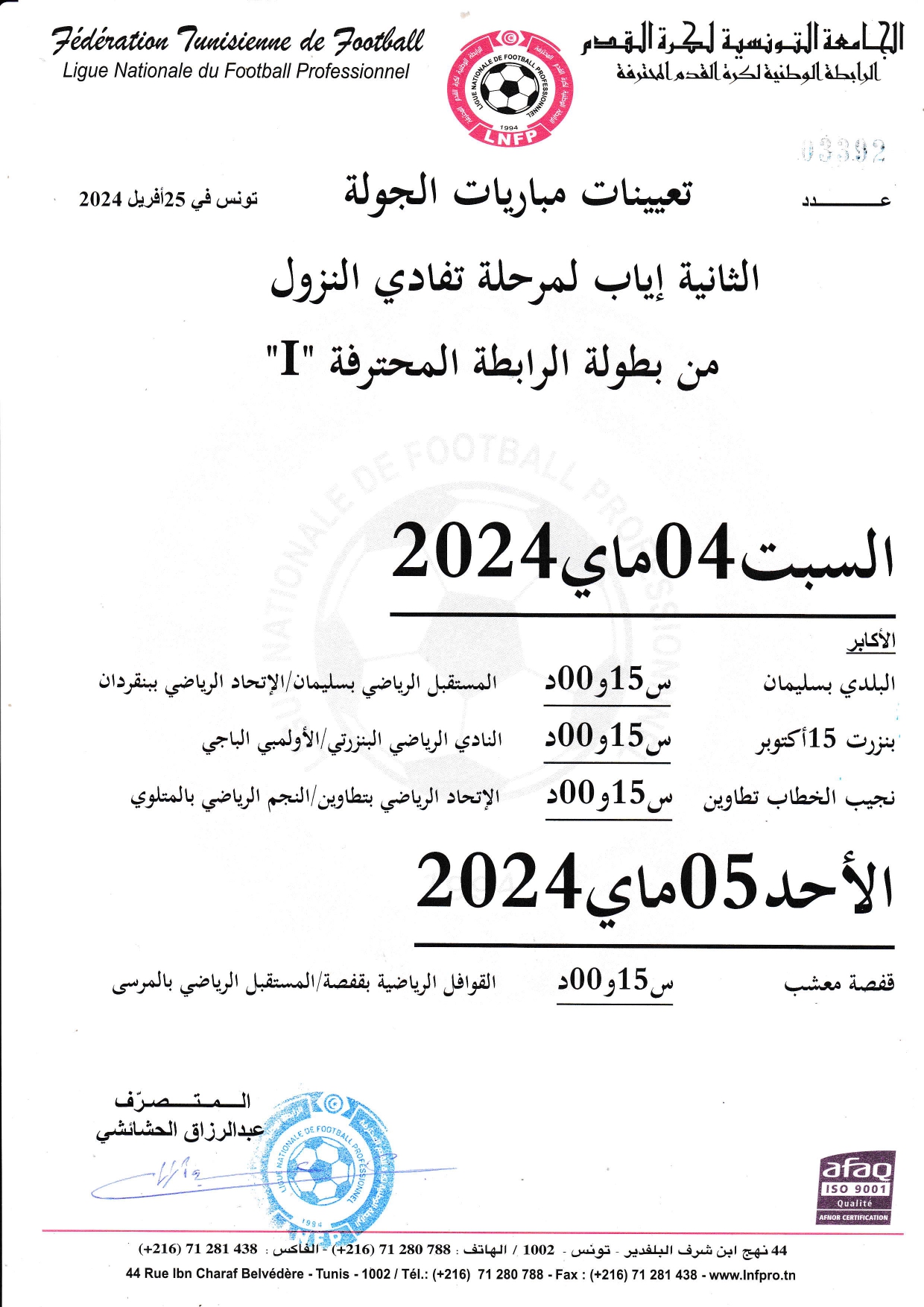 تعديل: تعيين مباريات الجولة 2 إياب من مرحلة تفادي النزول للرابطة المحترفة 1