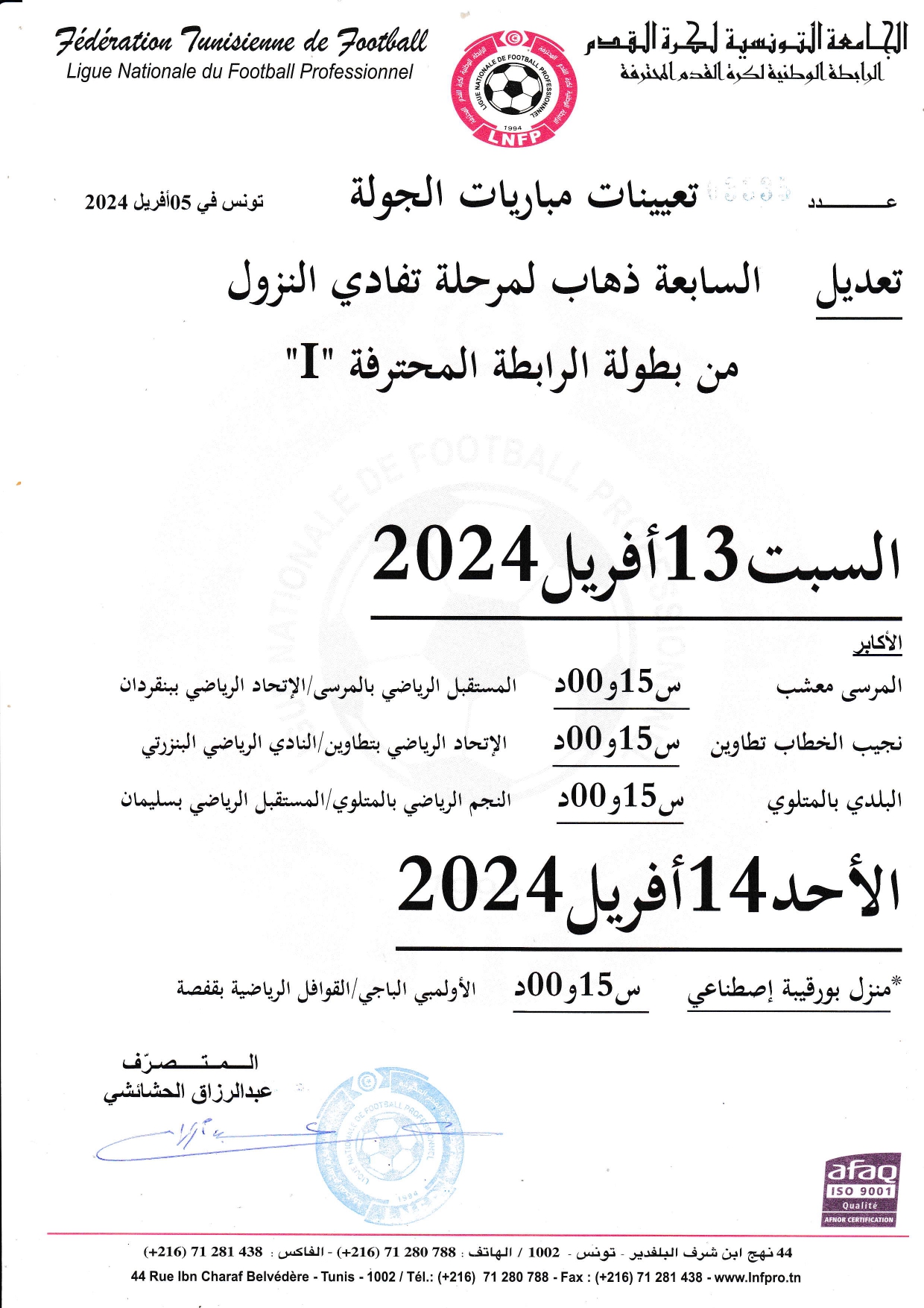 تعديل: تعيين مباريات الجولة 7 ذهاب من مرحلة تفادي النزول للرابطة المحترفة الاولى