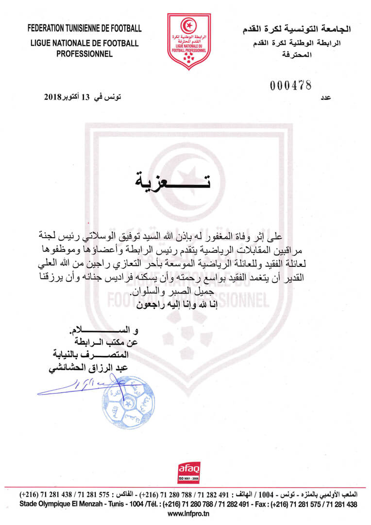 تعديل تعيينات مباريات الجولة 9 ذهاب لبطولة الرابطة « I »