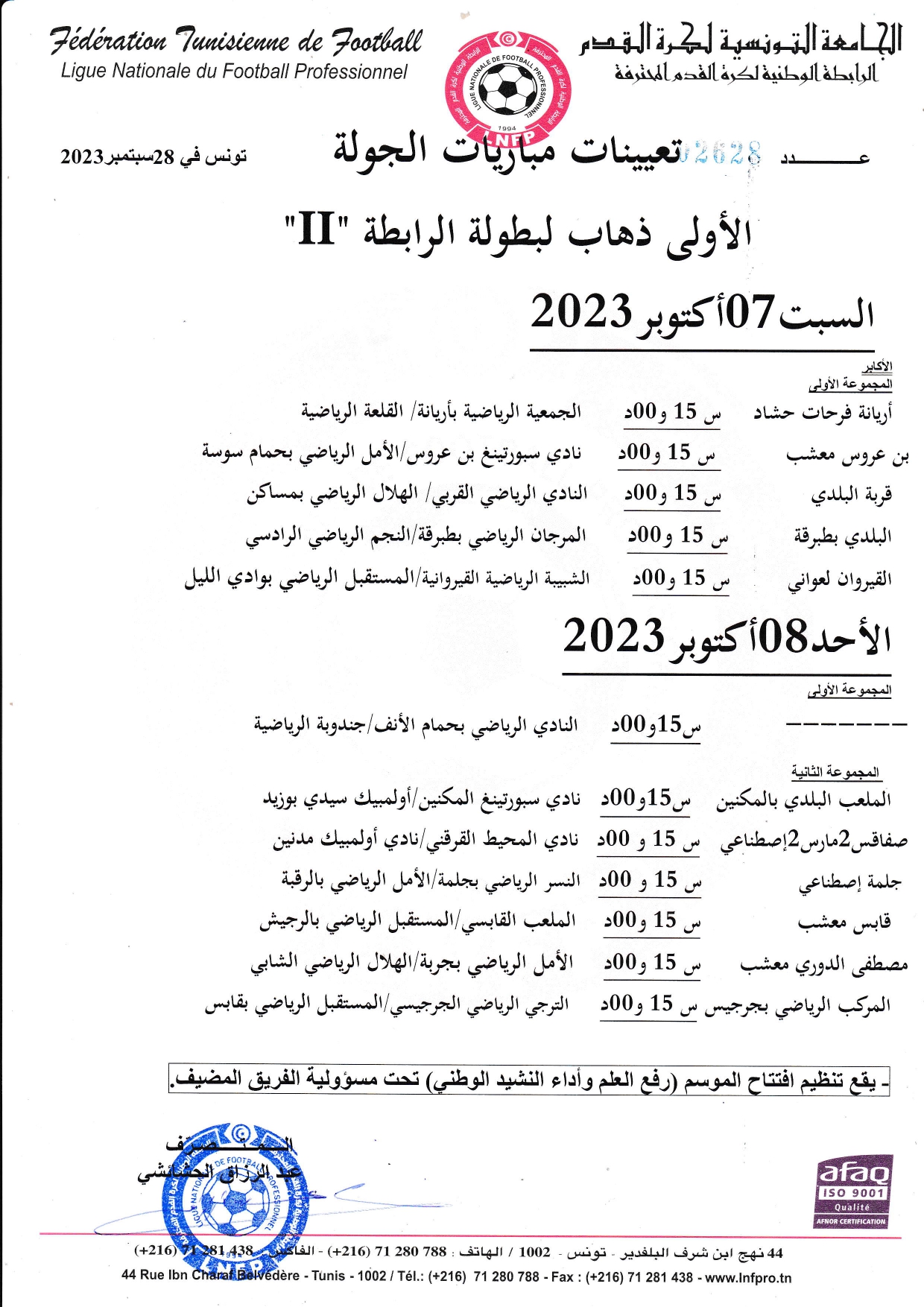 تعيينات مباريات الجولة 3 ذهاب لبطولة الرابطة « II »