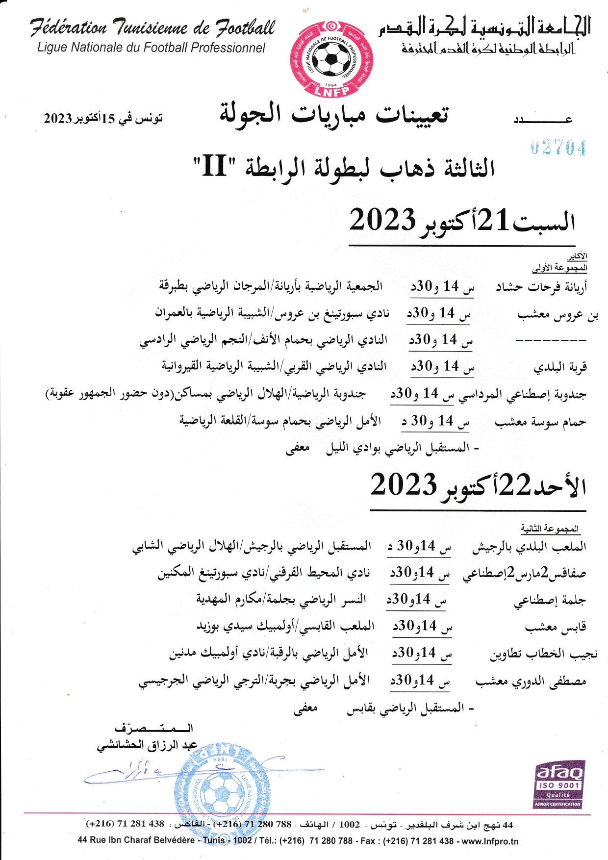 تعيينات مباريات الجولة 3 ذهاب لبطولة الرابطة « II »