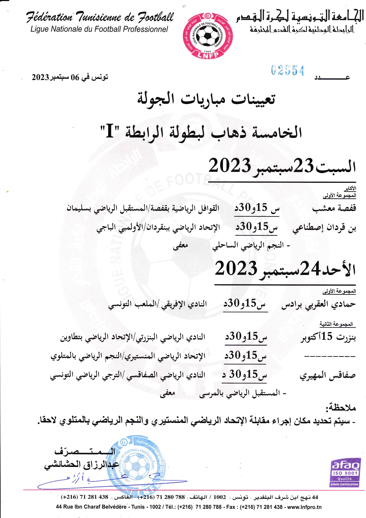 تعينات مباريات الجولة الخامسة ذهاب لبطولة الرابطة المحترفة 1