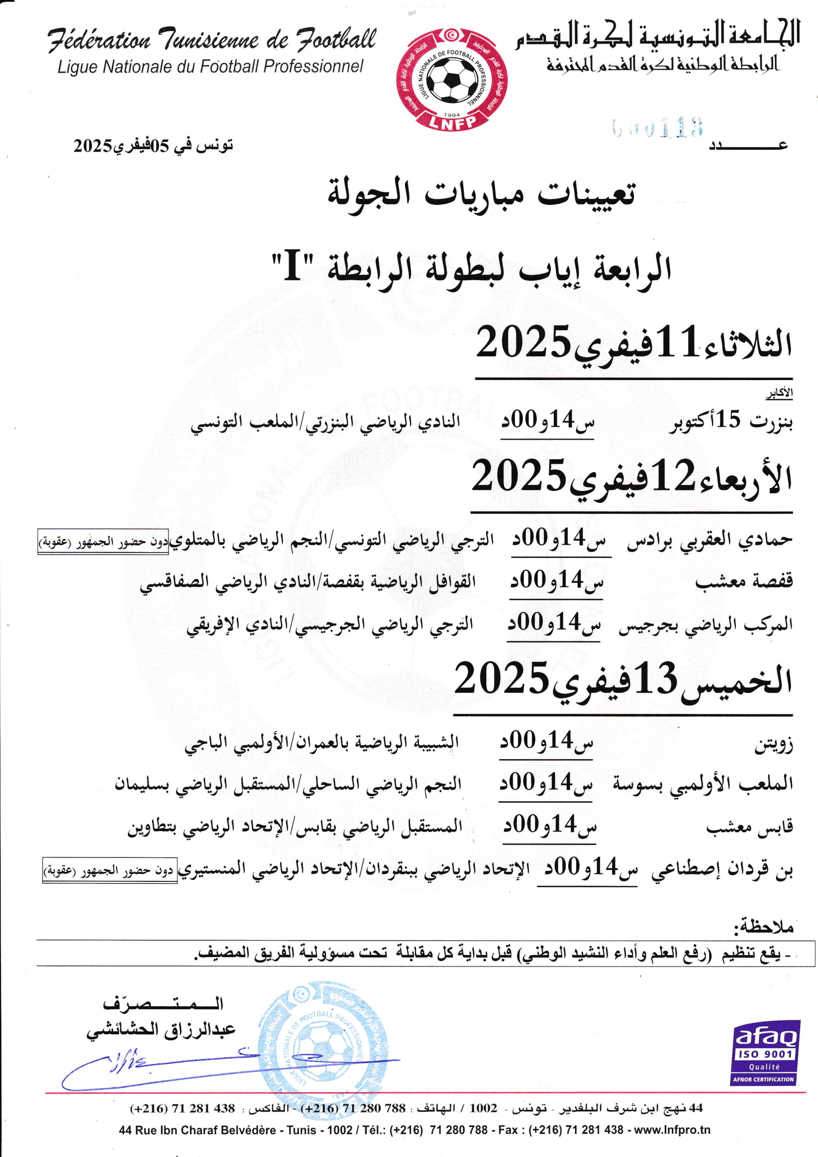 تعينات مباريات الجولة الرابعة إياب لبطولة الرابطة « I »
