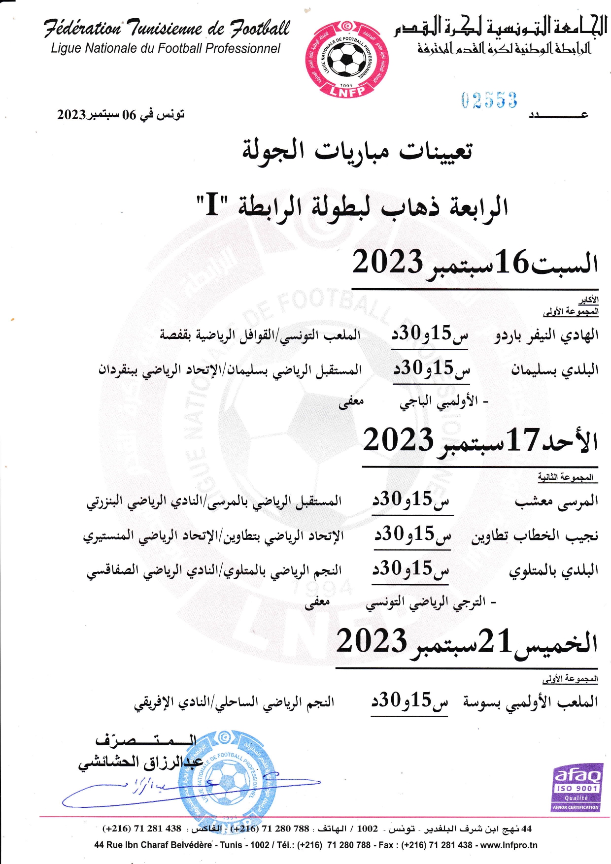 تعينات مباريات الجولة الرابعة ذهاب لبطولة الرابطة المحترفة 1