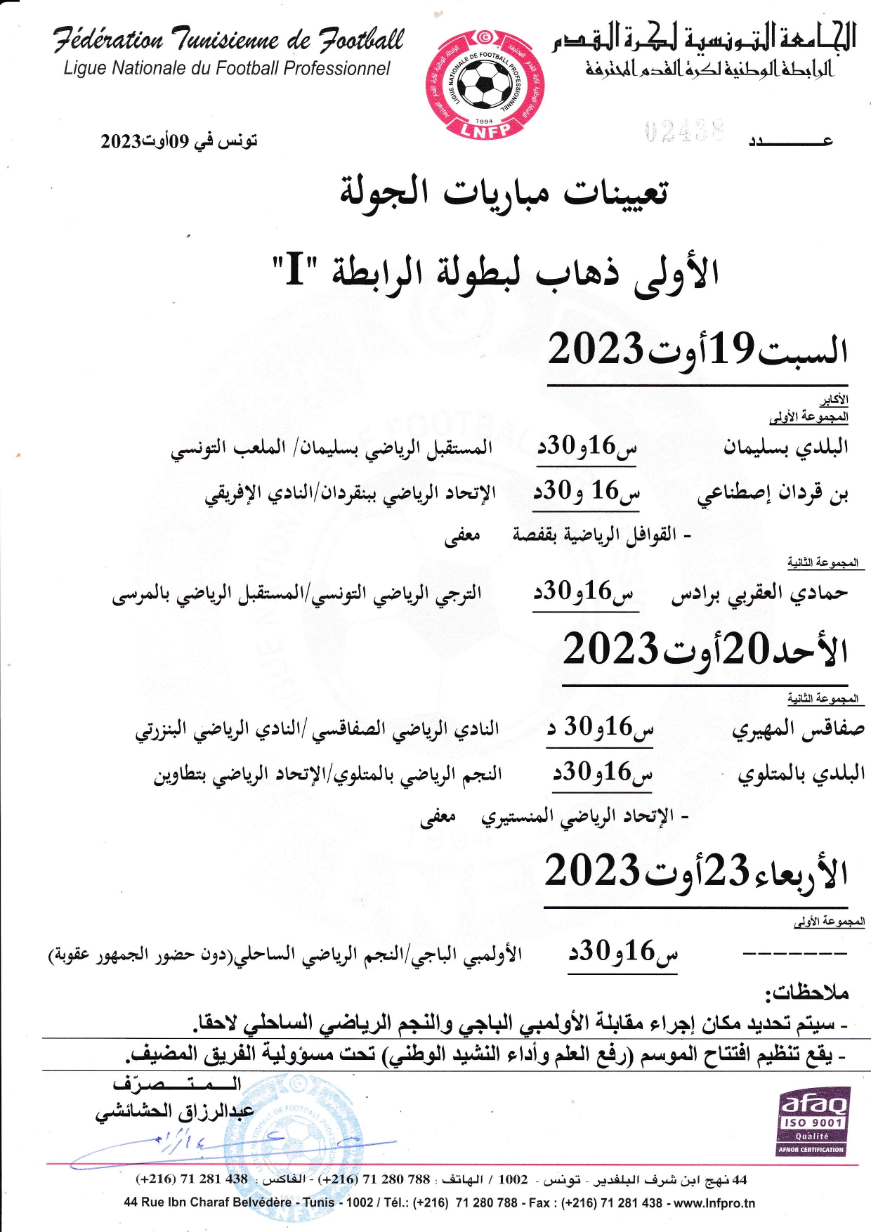 تعديل تعيينات مباريات الجولة 9 ذهاب لبطولة الرابطة « I »