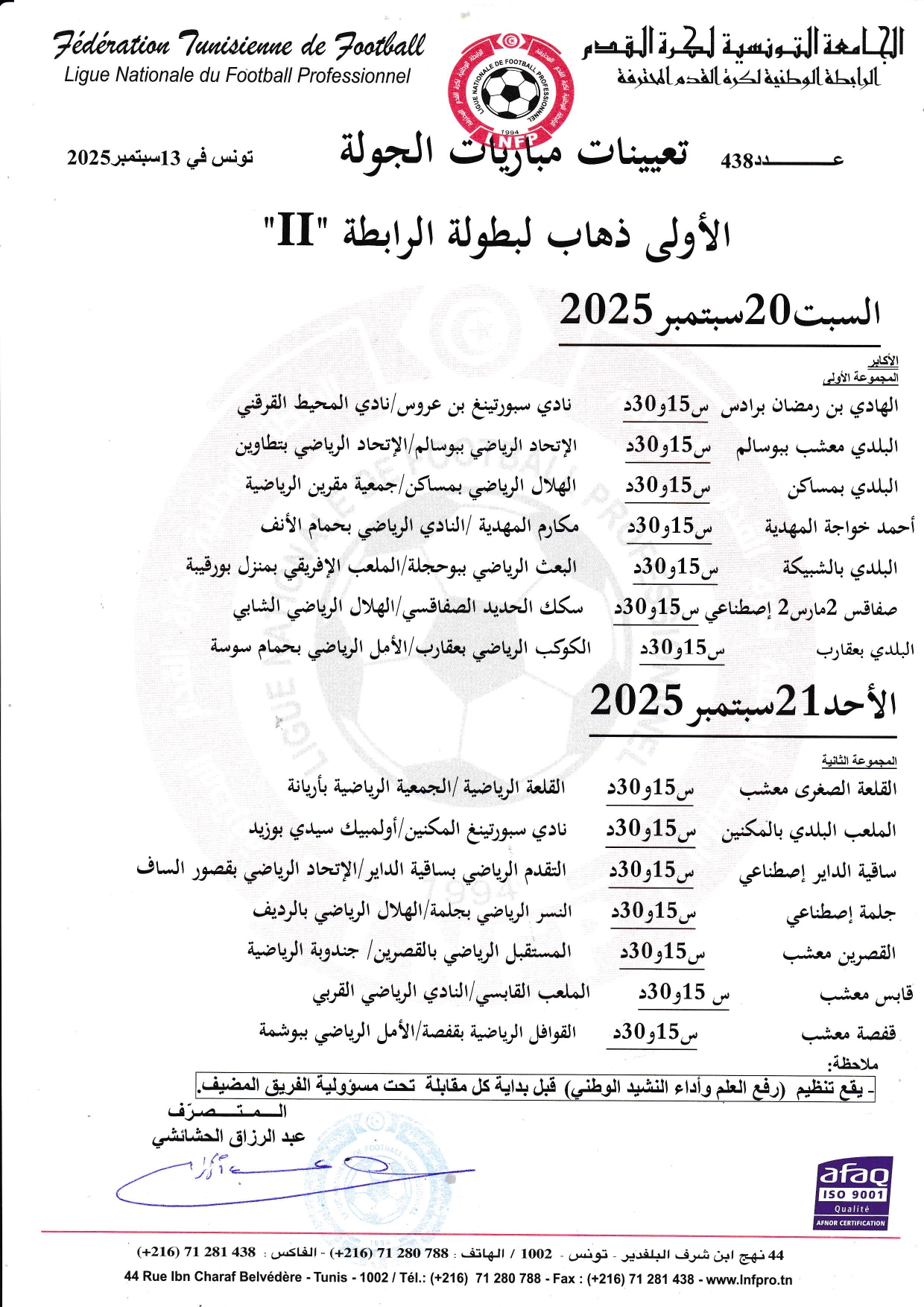 تعيينات مباريات الجولة الاولى ذهاب لبطولة الرابطة « II »