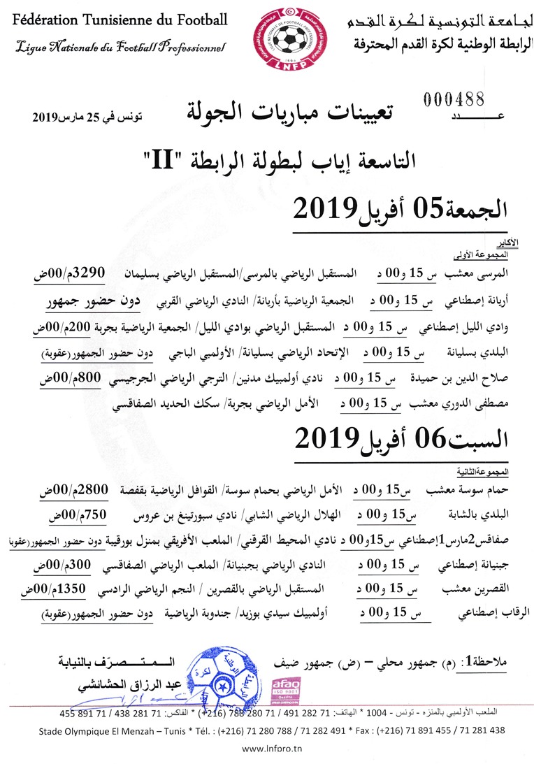 تعيينات مباريات الجولة التاسعة إياب لبطولة الرابطة 2