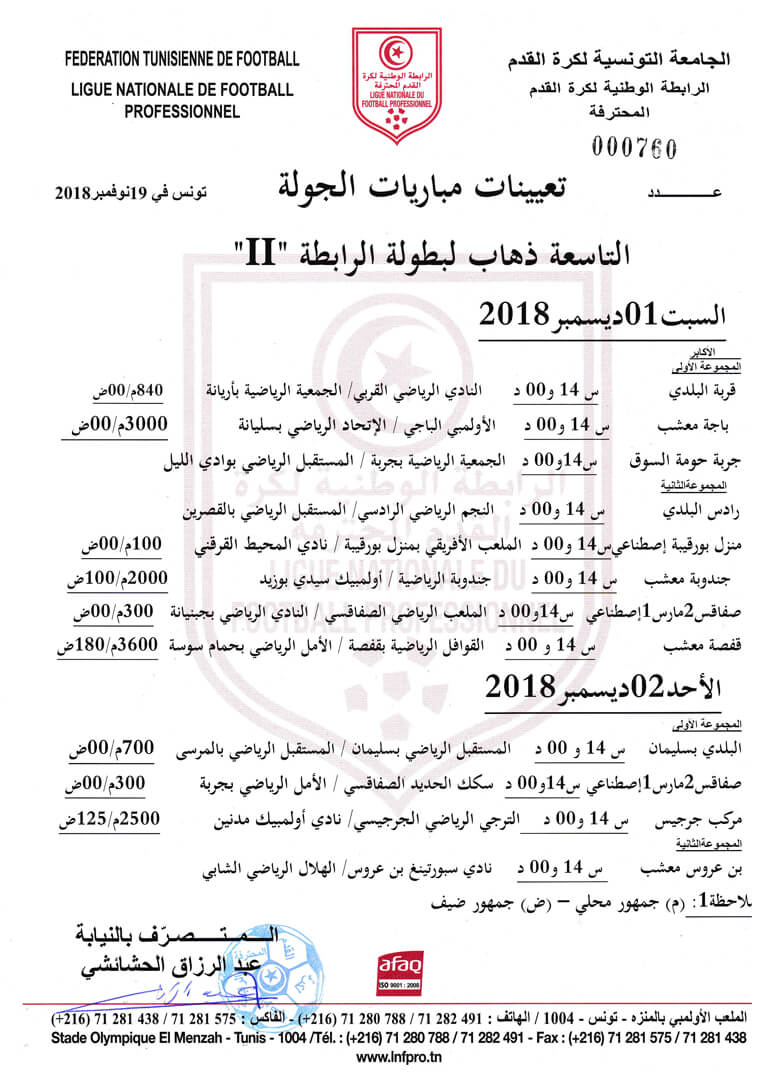 تعيينات مباريات الجولة التاسعة ذهاب لبطولة الرابطة 2