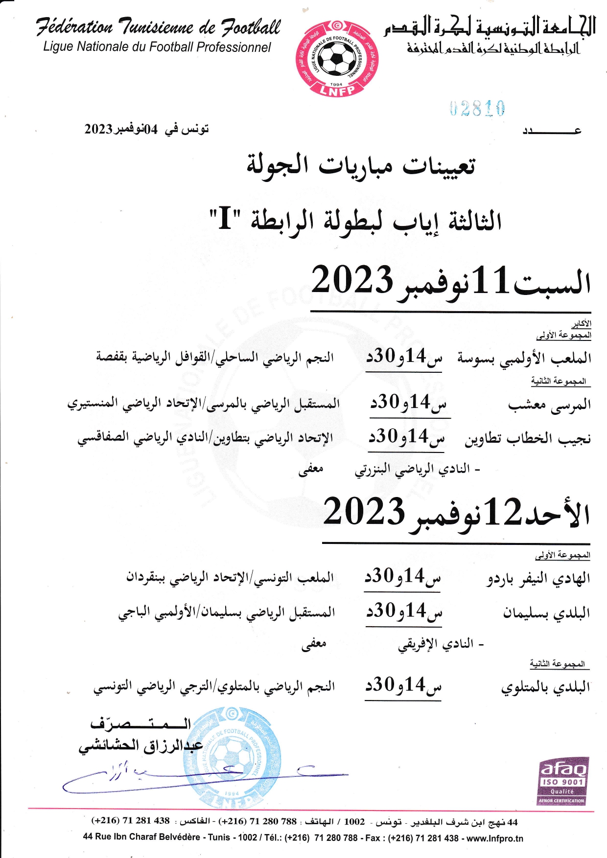 تعديل تعيينات مباريات الجولة 9 ذهاب لبطولة الرابطة « I »