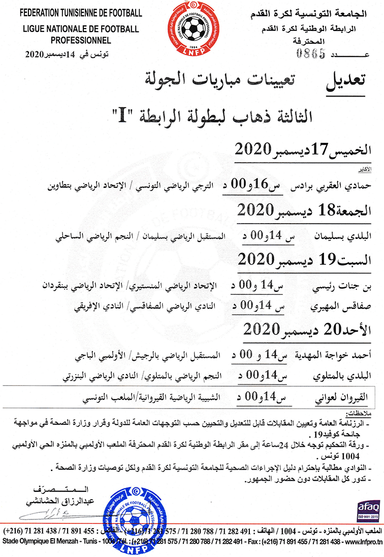 تعيينات مباريات الجولة الثالثة ذهاب لبطولة الرابطة 1 تعديل