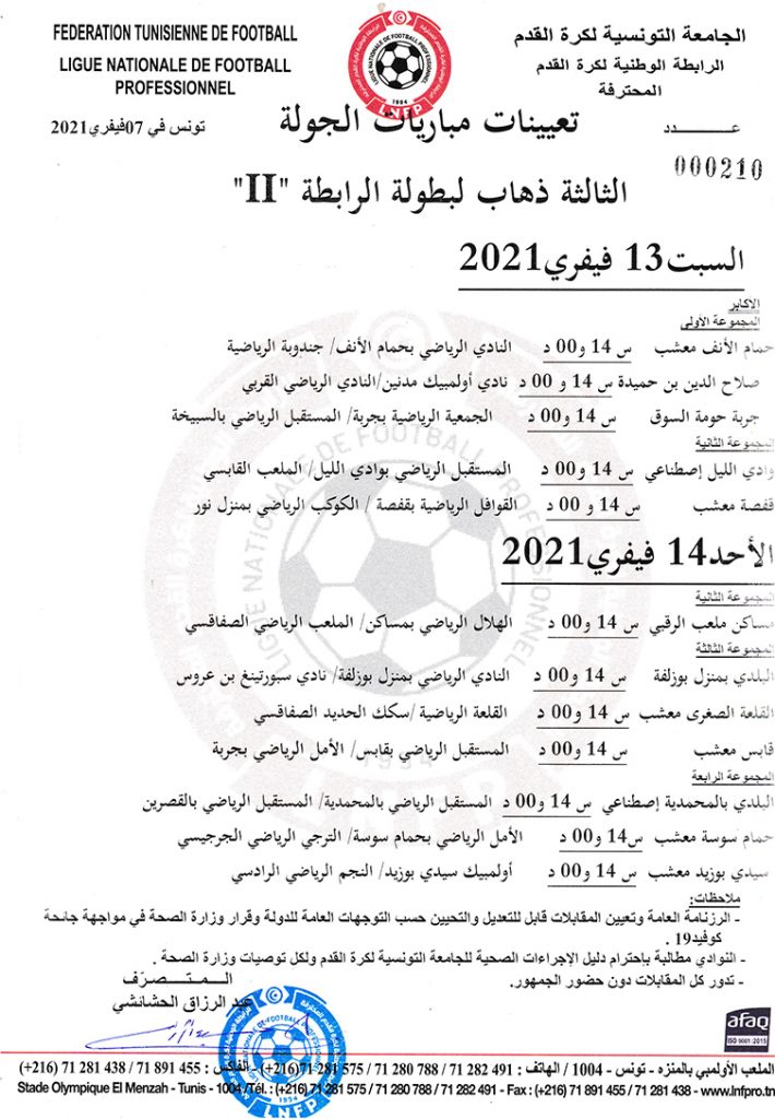 تعيينات مباريات الجولة 3 ذهاب لبطولة الرابطة « II »