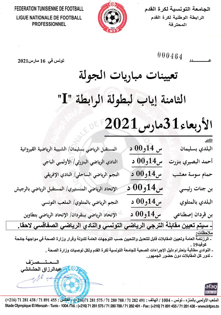 تعيينات مباريات الجولة الثامنة إياب لبطولة الرابطة 1
