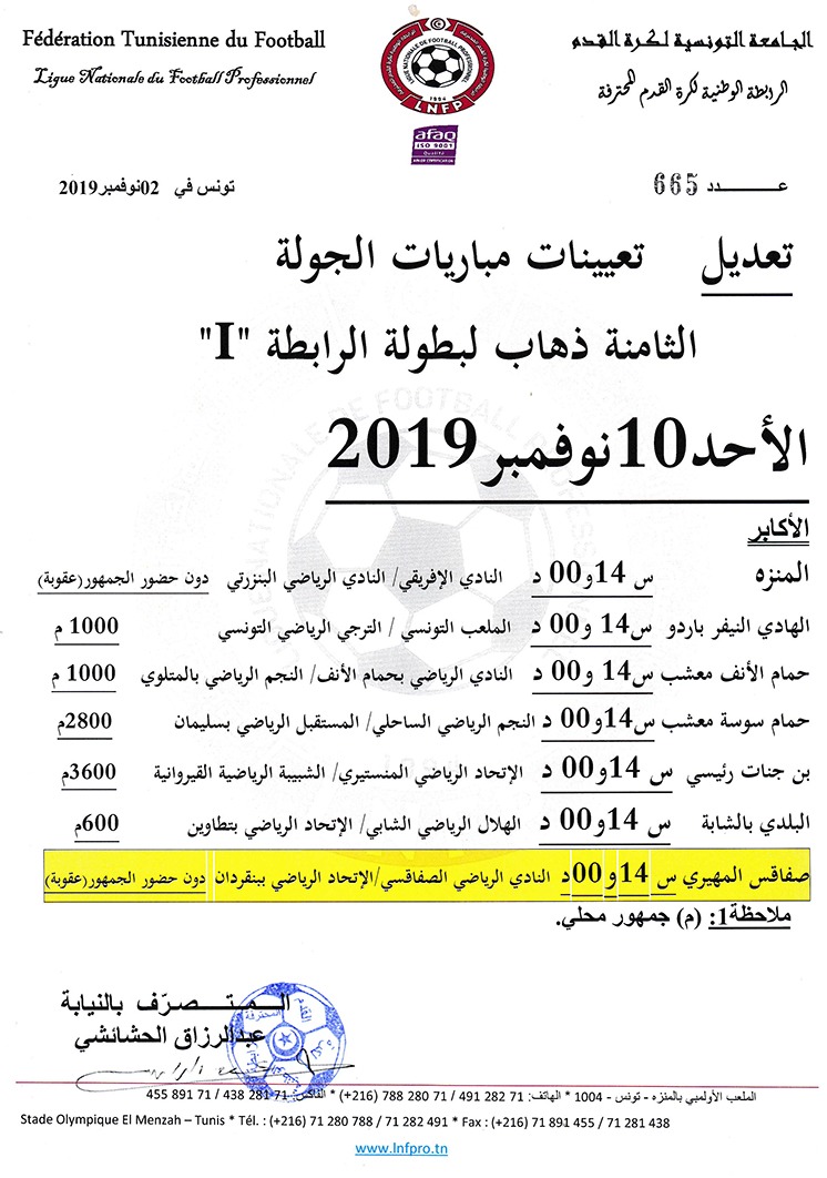 تعيينات مباريات الجولة العاشرة إياب لبطولة الرابطة « I »