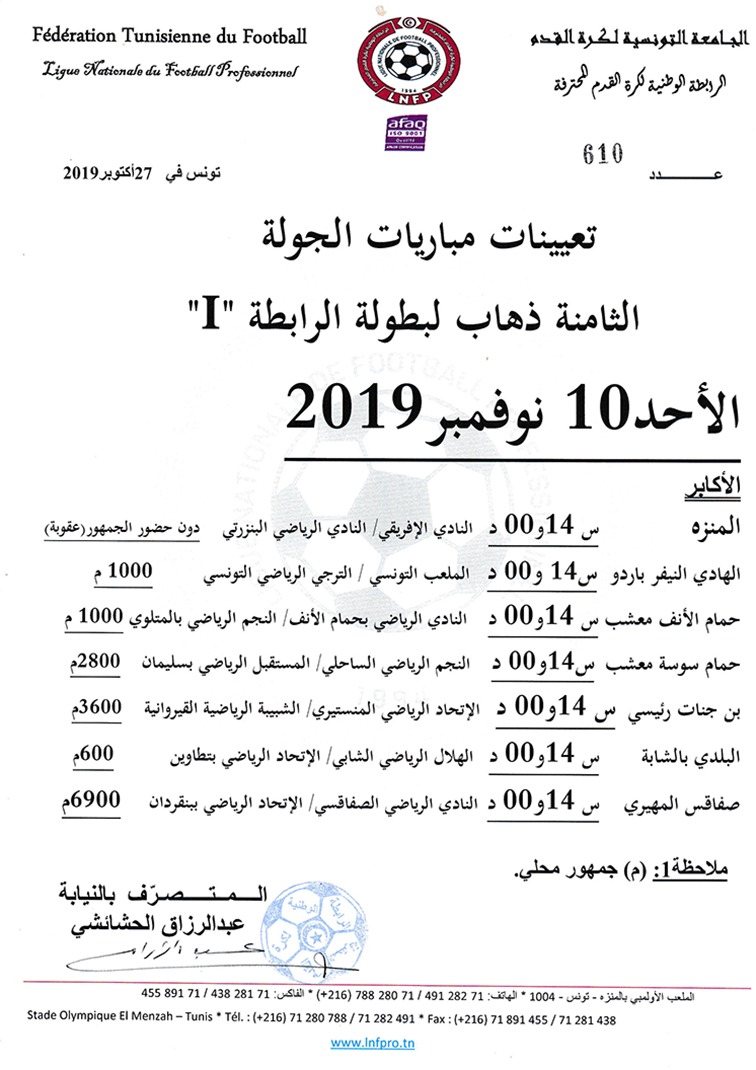 تعيينات مباريات الجولة الثامنة ذهاب لبطولة الرابطة 1
