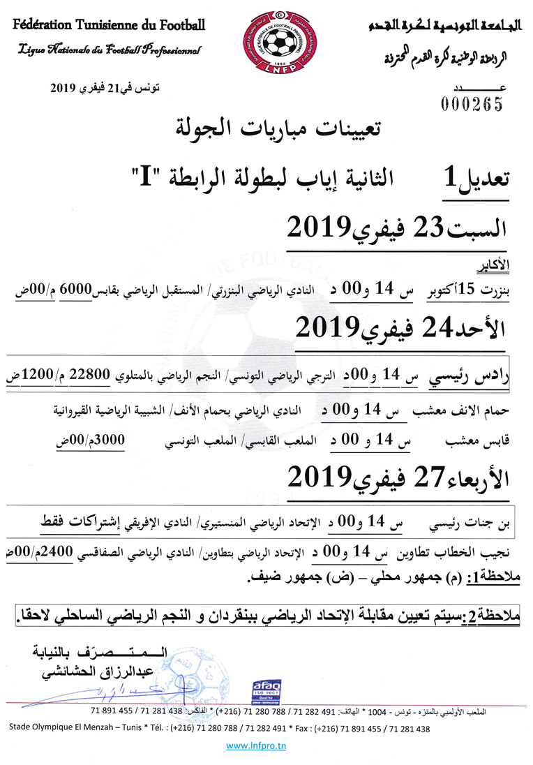 تعيينات مباريات الجولة الثانية إياب لبطولة الرابطة 1