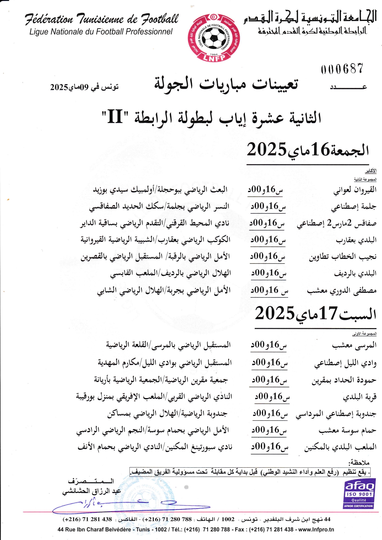 تعيينات مباريات الجولة الثانية عشرة إياب لبطولة الرابطة « II »