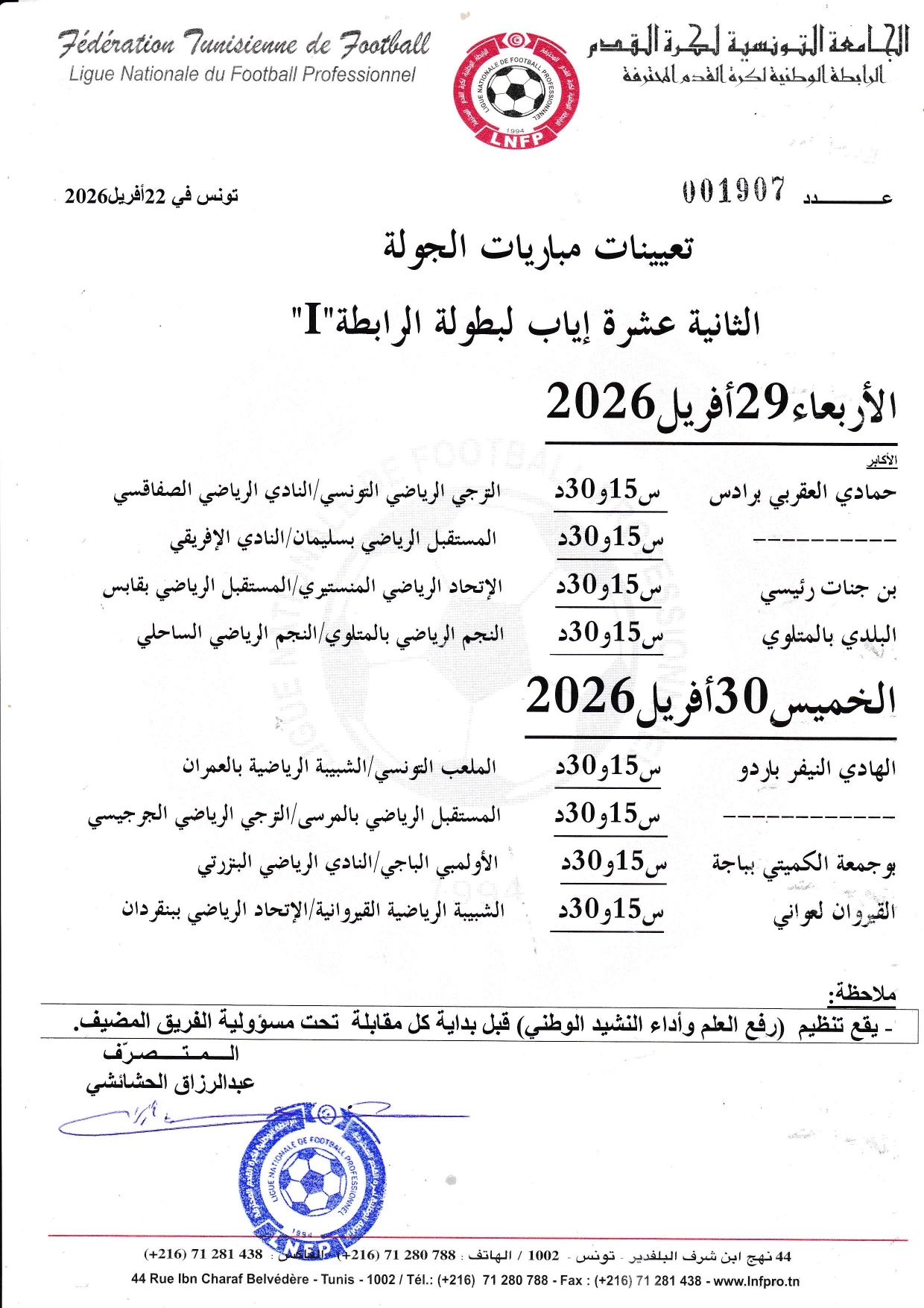 تعيينات مباريات الجولة الثانية عشرة إياب لبطولة الرابطة »I »