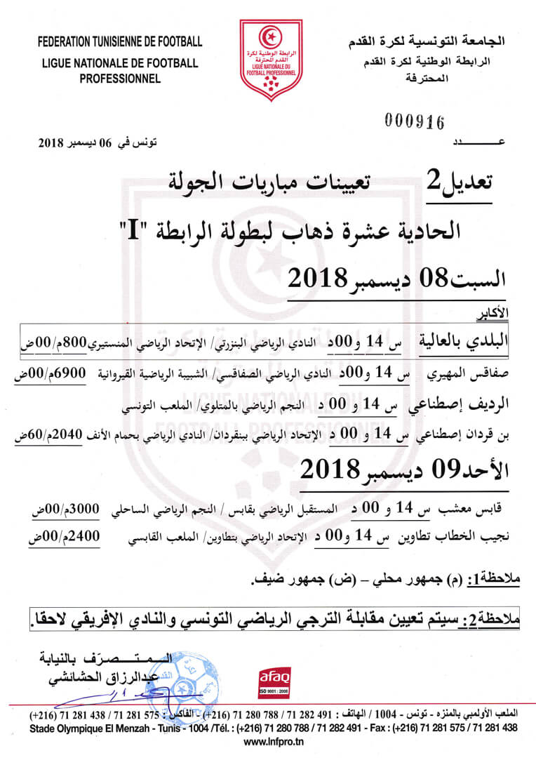 تعديل تعيينات مباريات الجولة 9 ذهاب لبطولة الرابطة « I »
