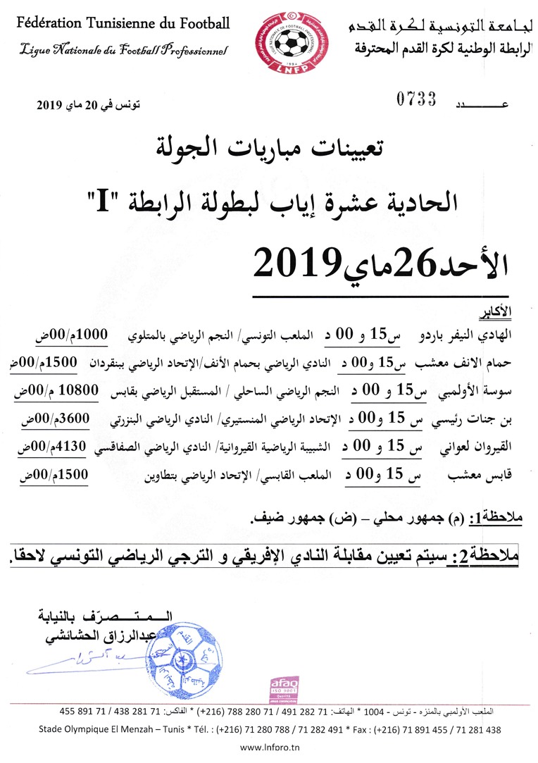 تعيينات مباريات الجولة الحادية عشر إياب لبطولة الرابطة 1
