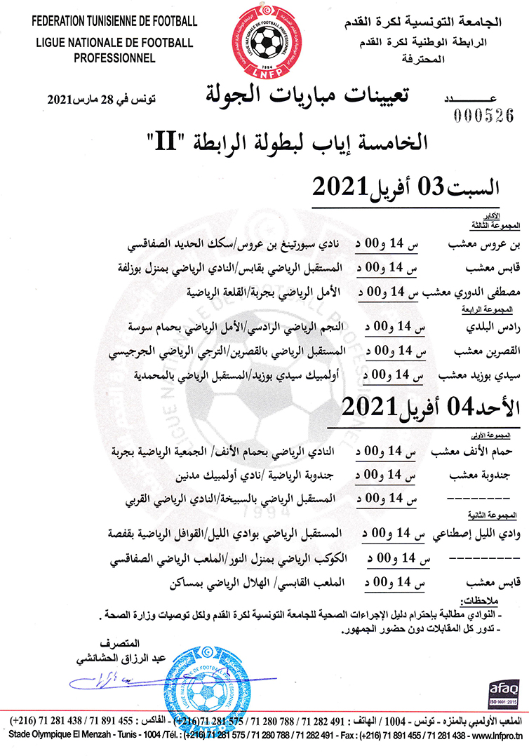 تعيينات مباريات الجولة الخامسة إياب لبطولة الرابطة 2