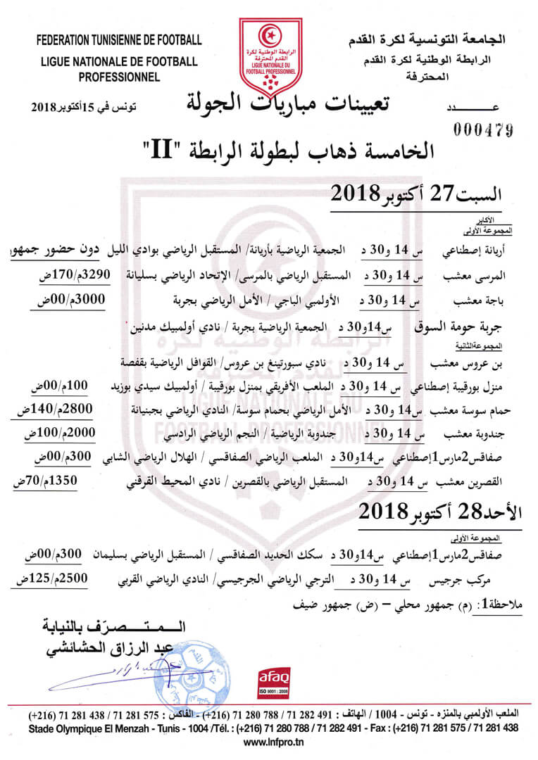 تعيينات مباريات الجولة الخامسة ذهاب لبطولة الرابطة 2