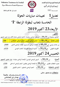 تعيينات مباريات الجولة العاشرة إياب لبطولة الرابطة « I »