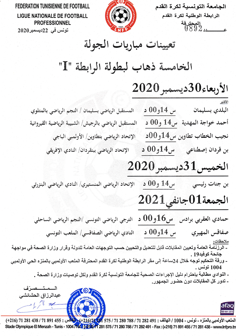 تعيينات مباريات الجولة العاشرة إياب لبطولة الرابطة « I »
