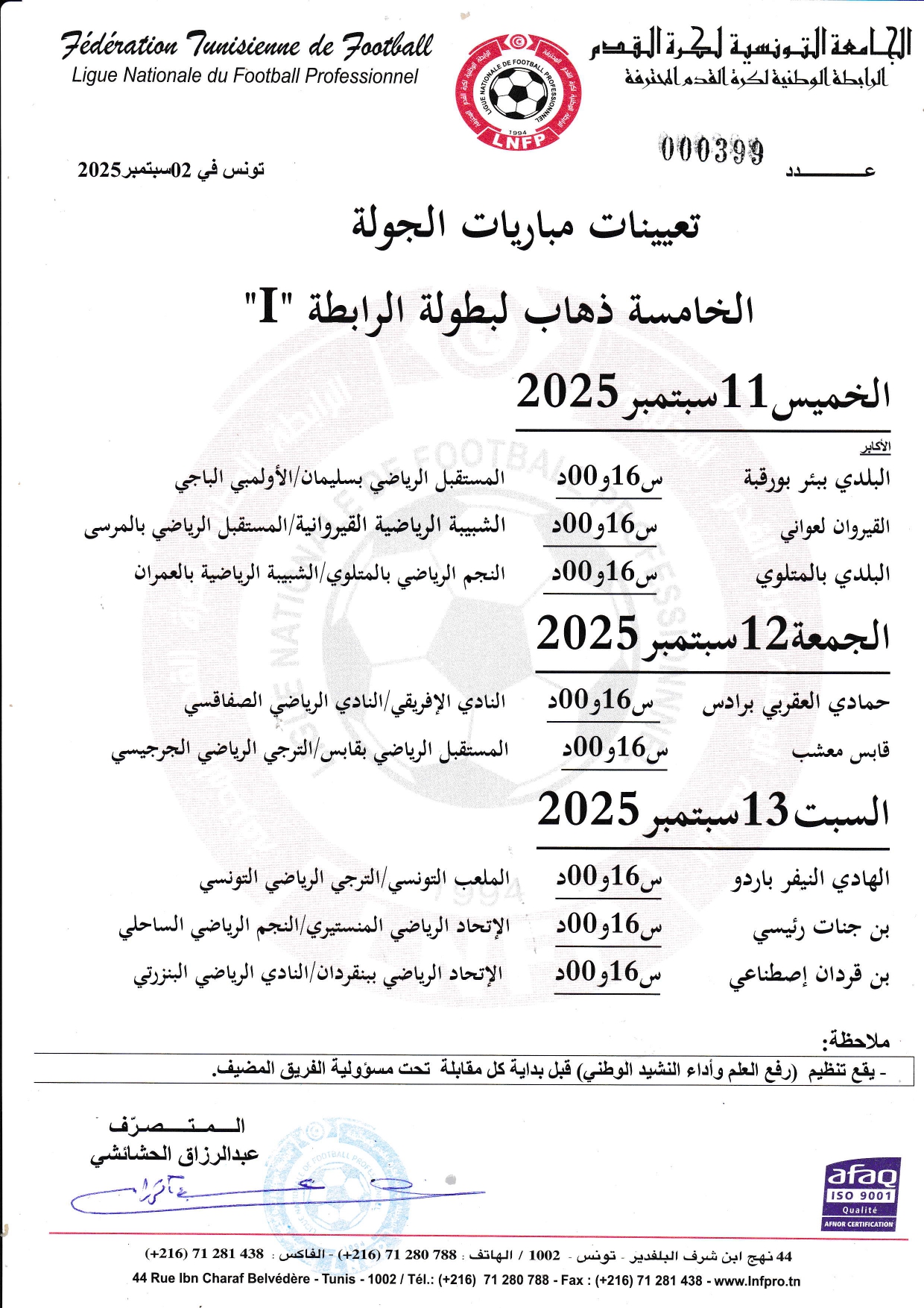 تعيينات مباريات الجولة الخامسة ذهاب لبطولة الرابطة « I »