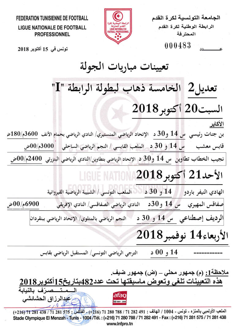 تعيينات مباريات الجولة الخامسة ذهاب لبطولة الرابطة 1