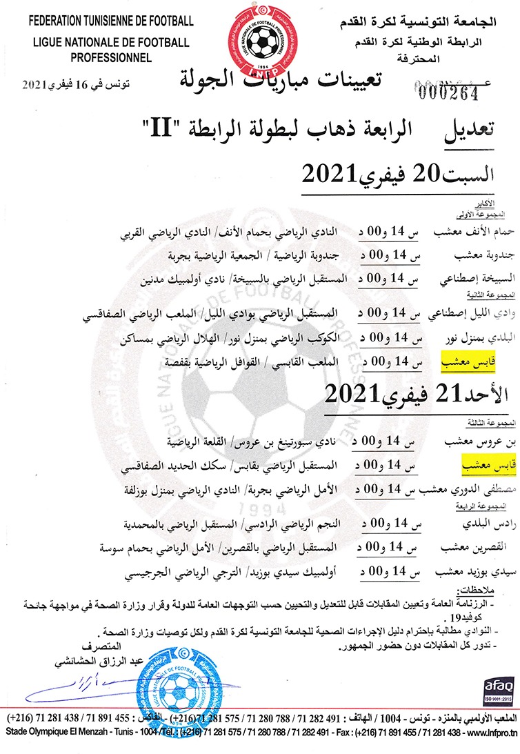 تعيينات مباريات الجولة الرابعة ذهاب لبطولة الرابطة 2 – تعديل