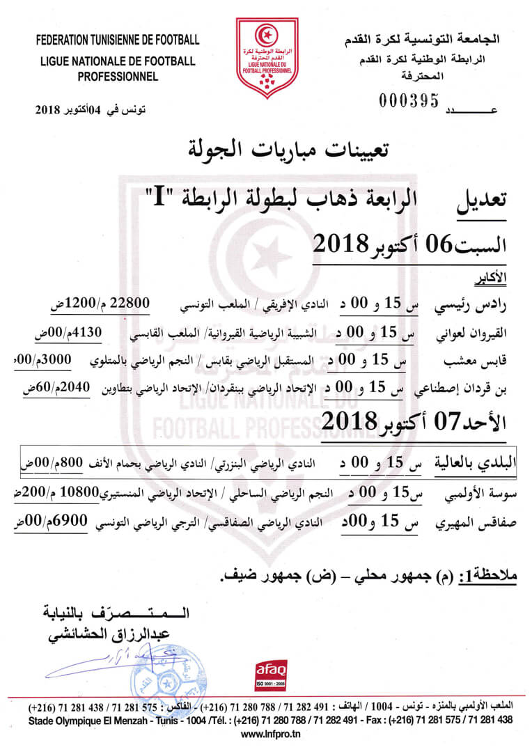 تعديل تعيينات مباريات الجولة 9 ذهاب لبطولة الرابطة « I »
