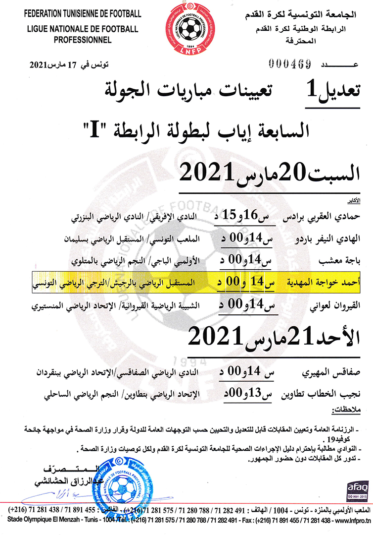 تعيينات مباريات الجولة السابعة إياب لبطولة الرابطة 1