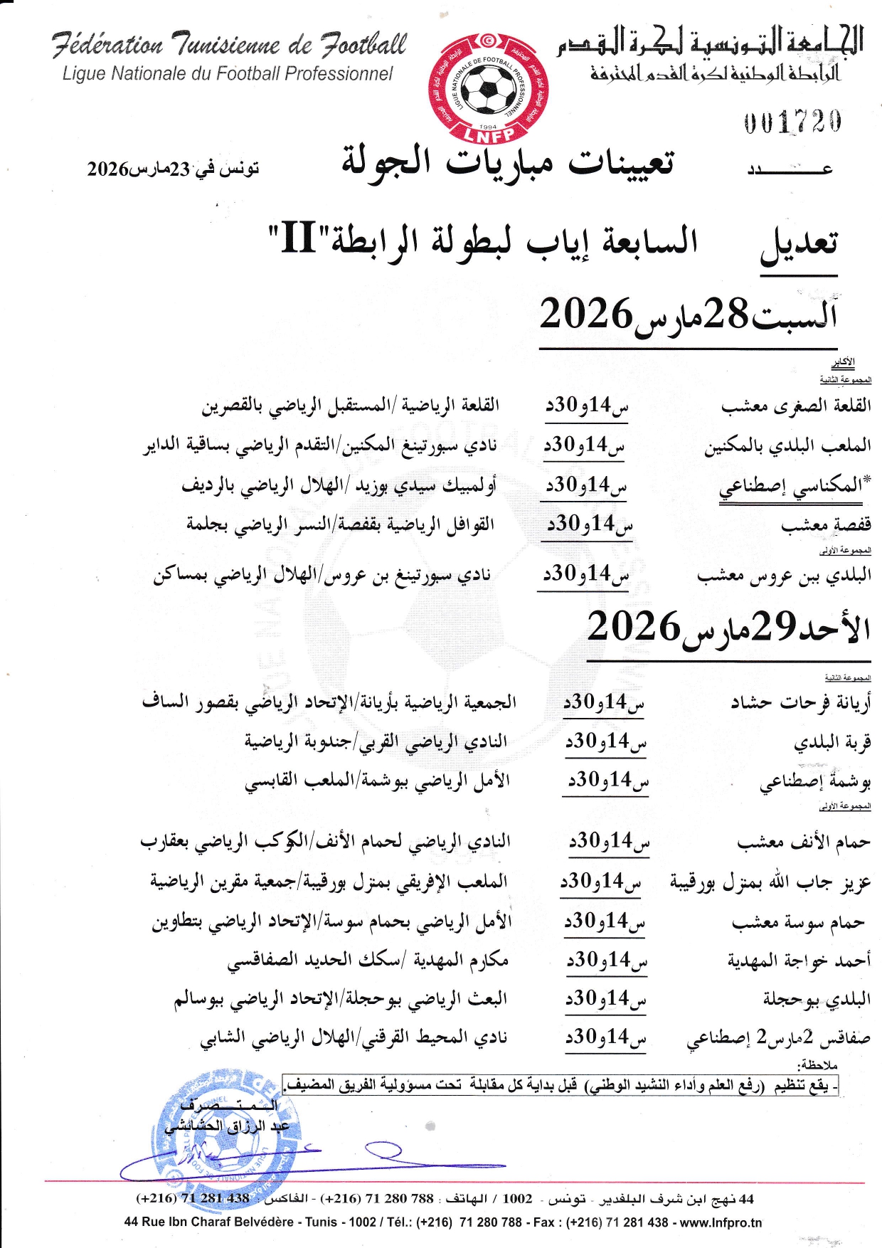 تعيينات مباريات الجولة السابعة إياب لبطولة الرابطة « II »