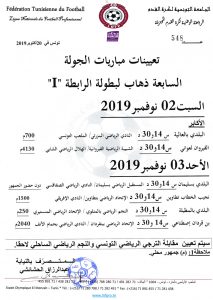 تعيينات مباريات الجولة السابعة ذهاب لبطولة الرابطة 1