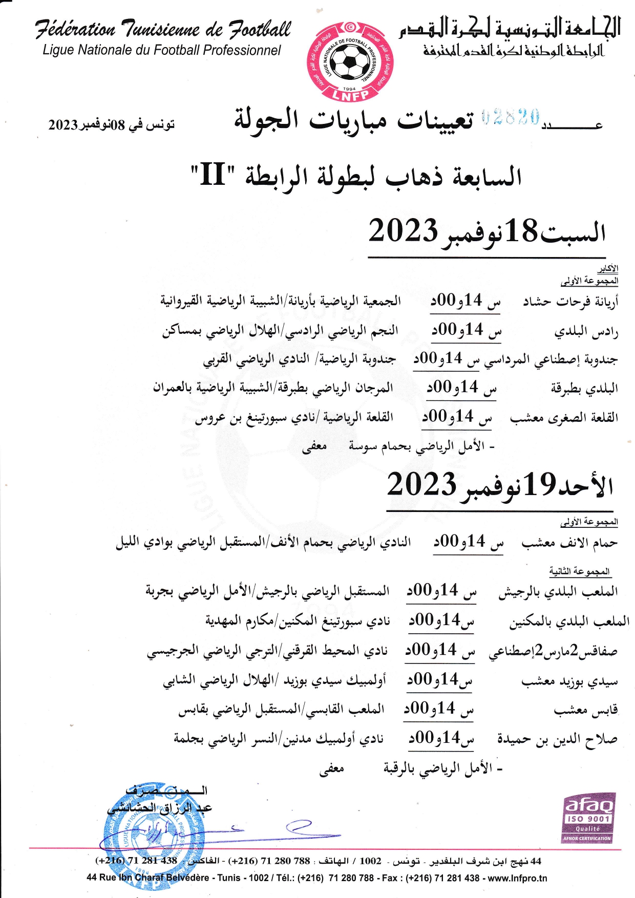 تعيينات مباريات الجولة السابعة ذهاب لبطولة الرابطة الثانية