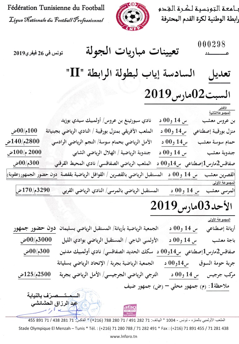 تعيينات مباريات الجولة السادسة إياب لبطولة الرابطة 2