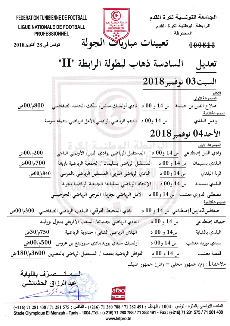 تعيينات مباريات الجولة السادسة ذهاب لبطولة الرابطة 2
