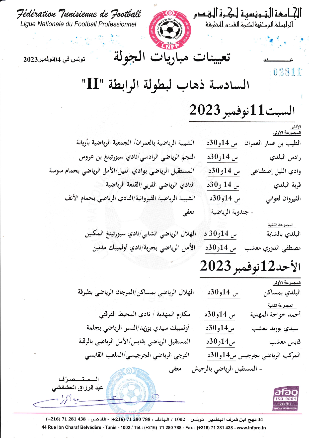 تعيينات مباريات الجولة السادسة ذهاب لبطولة الرابطة الثانية