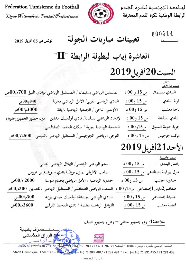 تعيينات مباريات الجولة العاشرة إياب لبطولة الرابطة 2