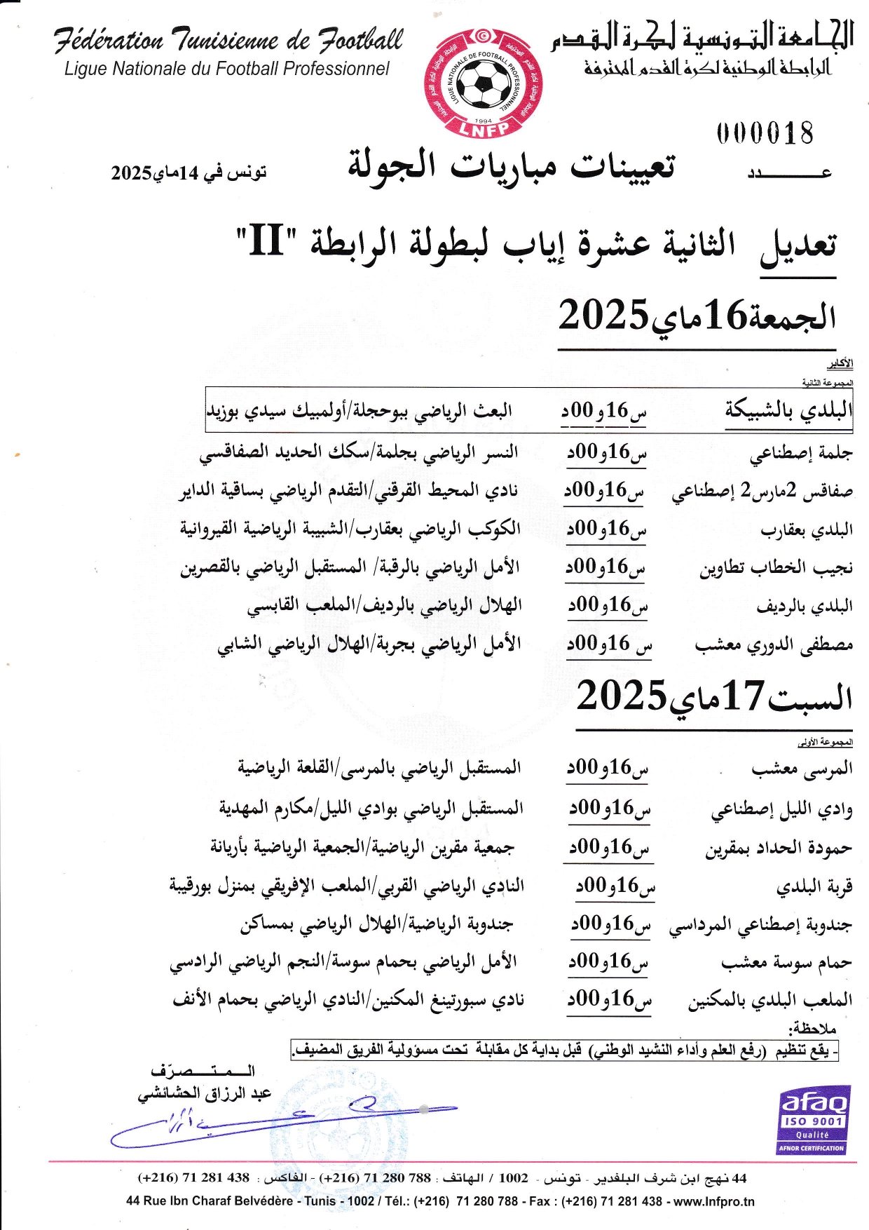 تعيينات مباريات الجولة تعديل الثانية عشرة إياب لبطولة الرابطة « II »