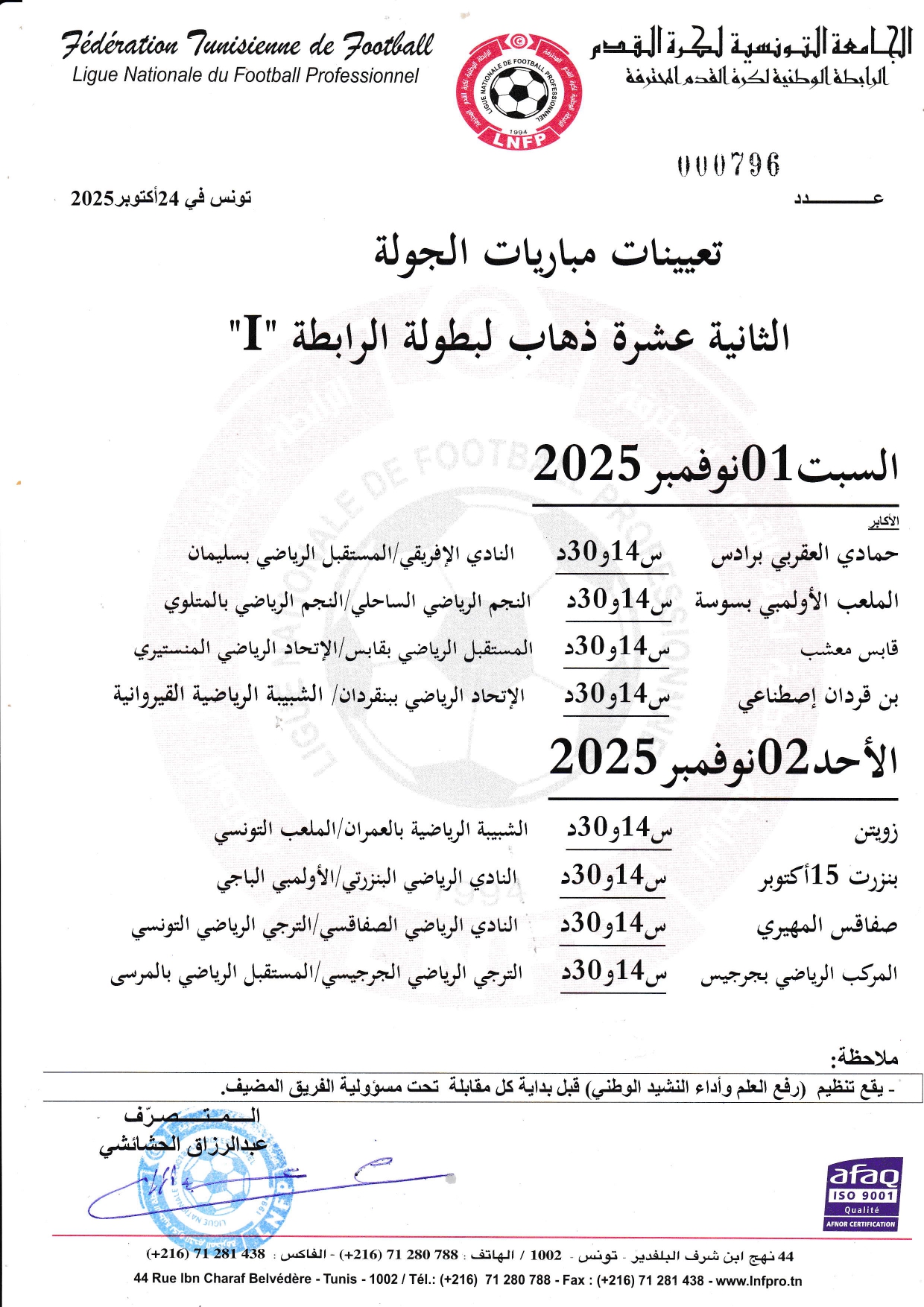 تعيينات مباريات الجولة 12 ذهاب لبطولة الرابطة I