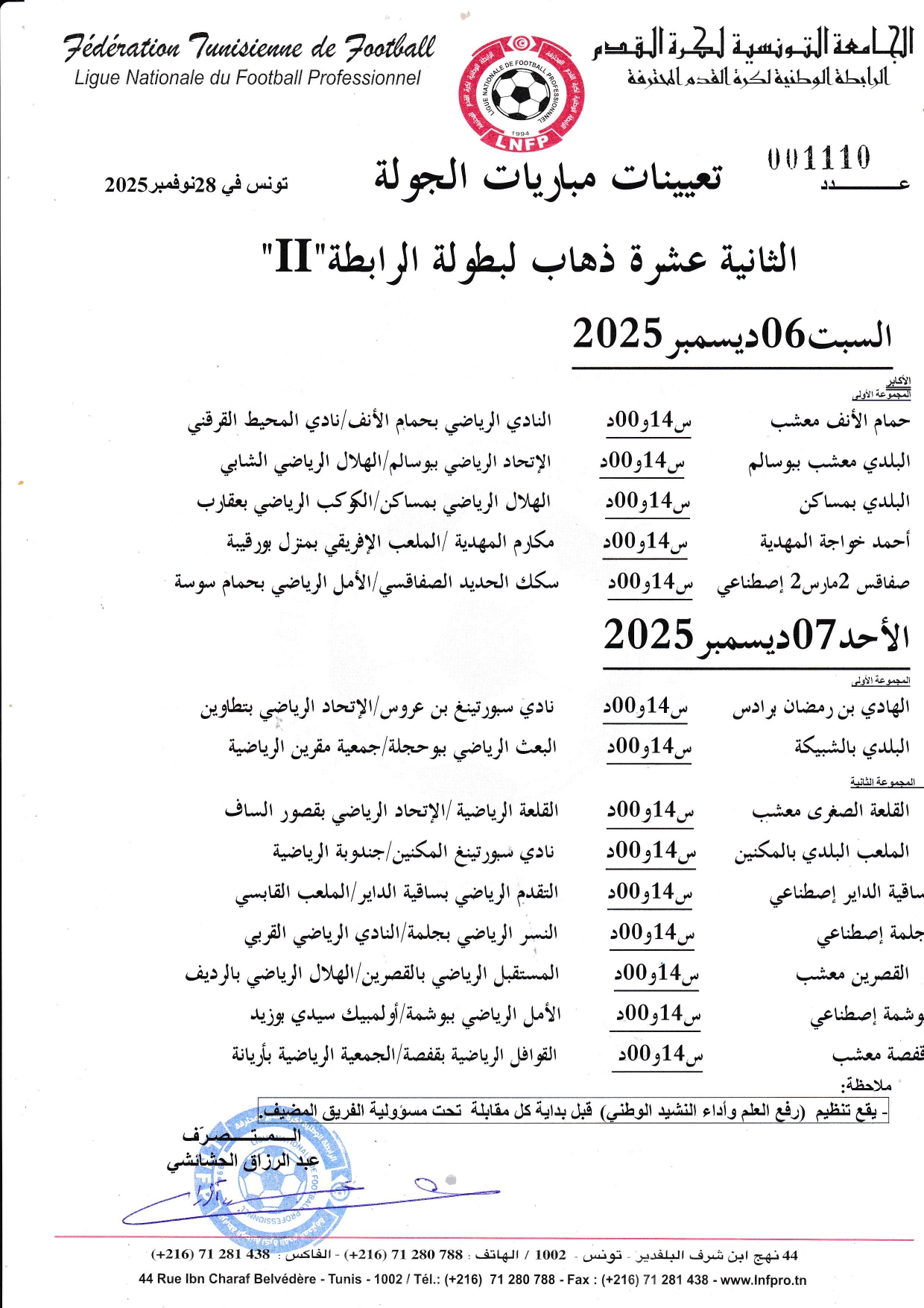 تعيينات مباريات الجولة 12 ذهاب لبطولة الرابطة II