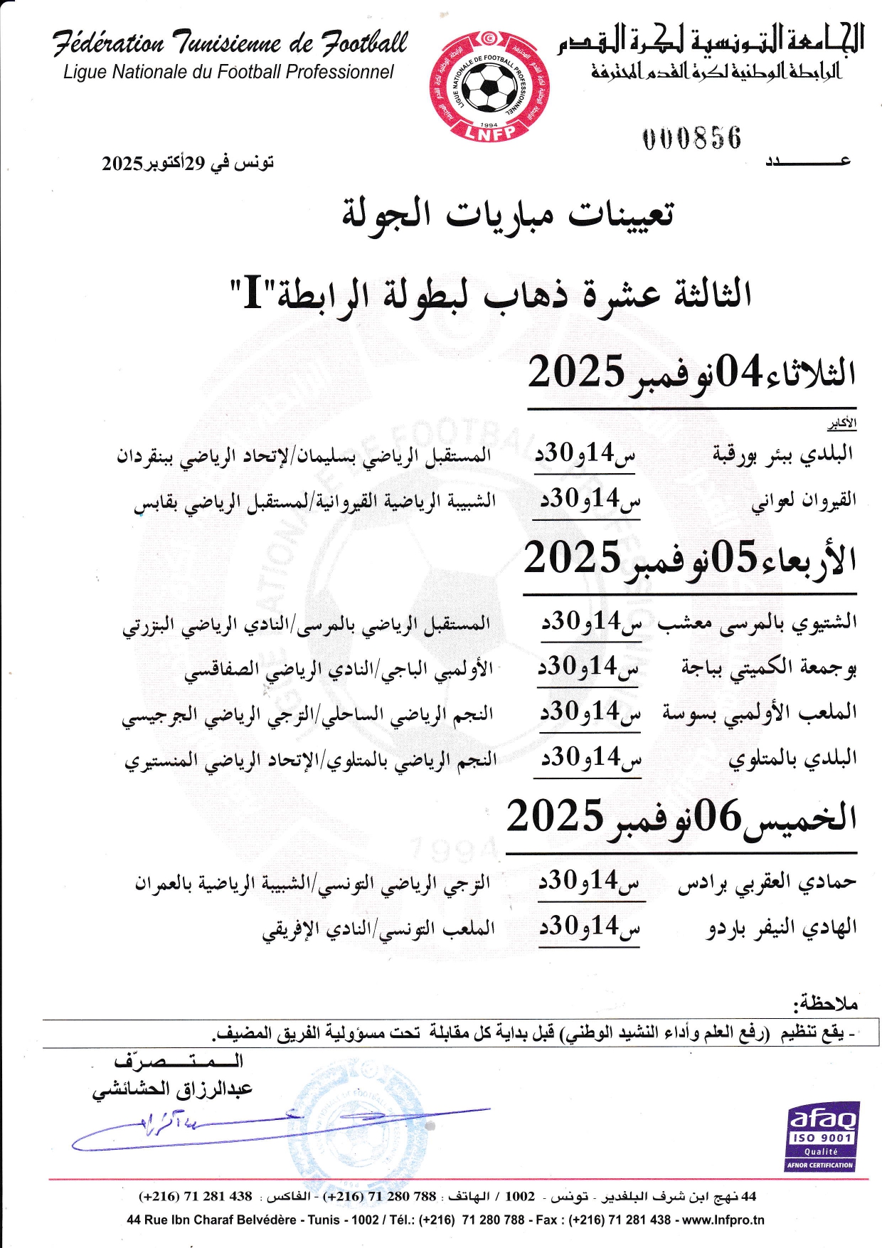 تعيينات مباريات الجولة 13 ذهاب لبطولة الرابطة I