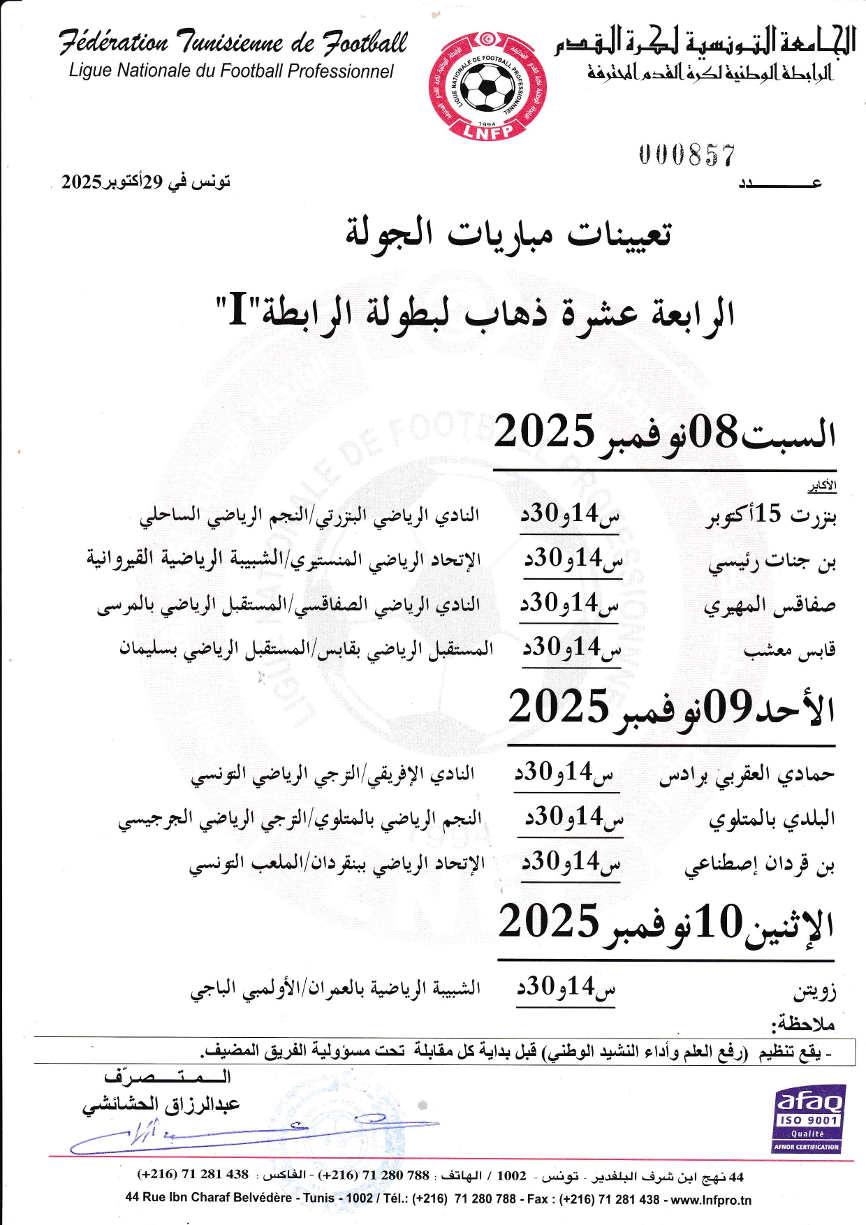 تعيينات مباريات الجولة العاشرة إياب لبطولة الرابطة « I »