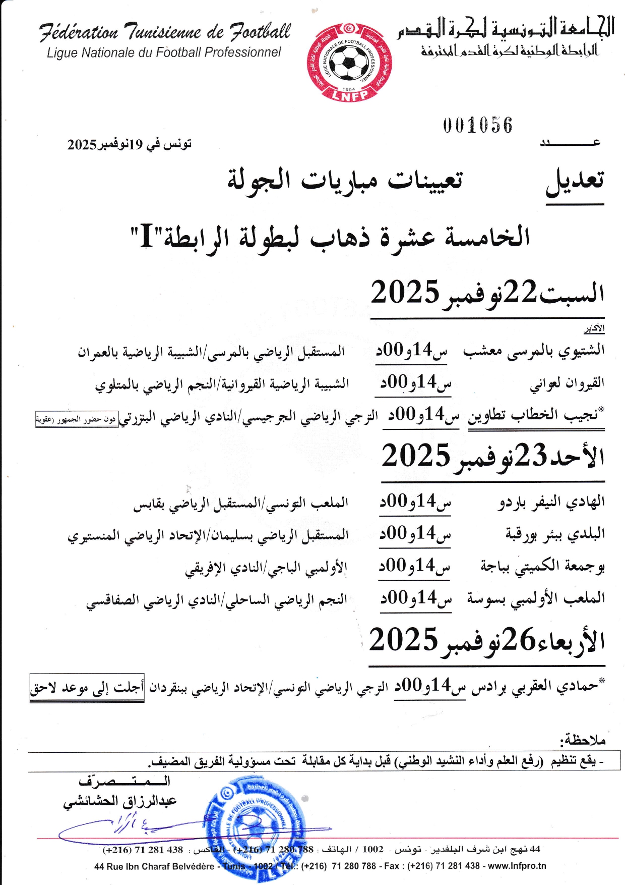 تعيينات مباريات الجولة 15 ذهاب لبطولة الرابطة I