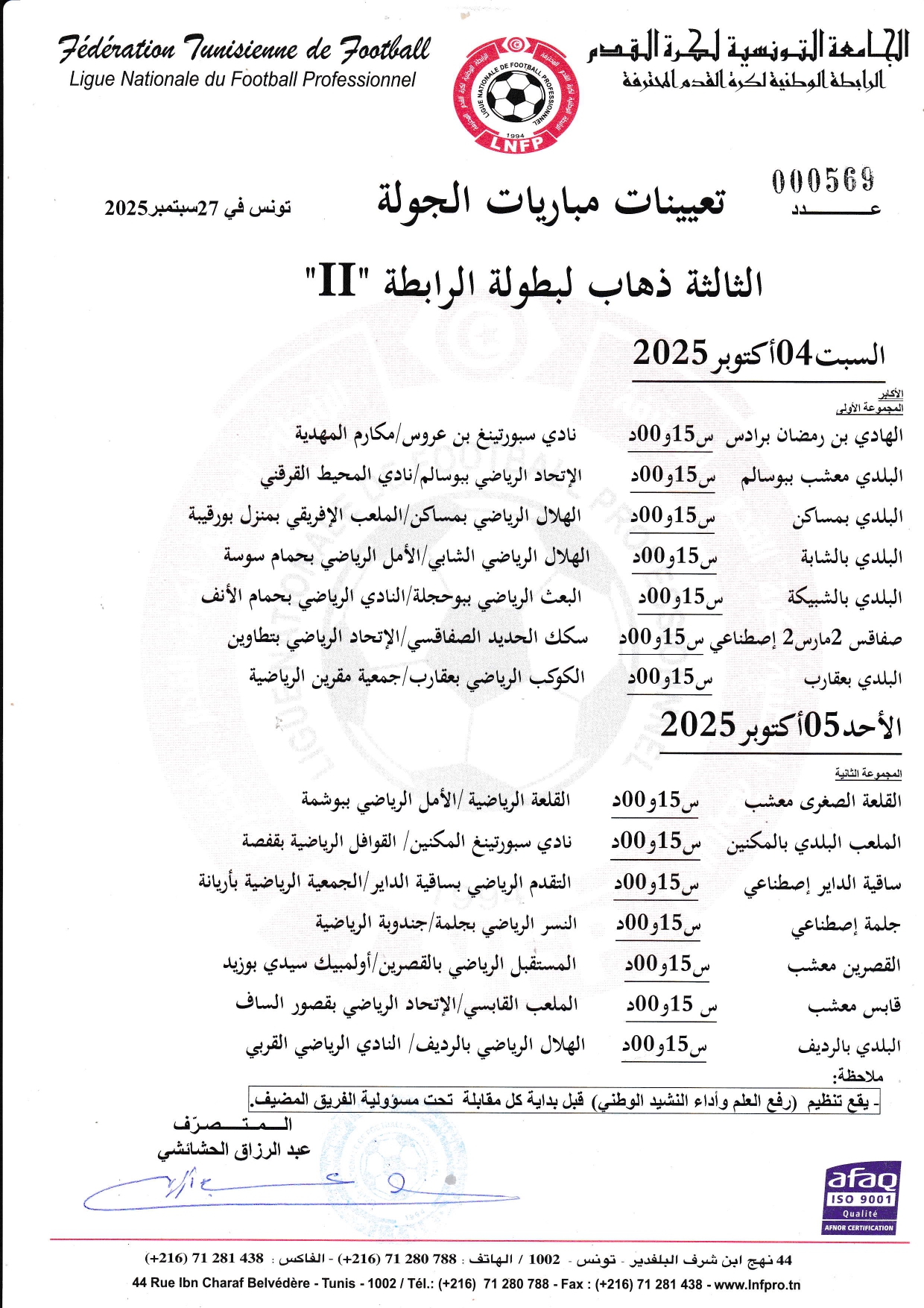 تعيينات مباريات الجولة 3 ذهاب لبطولة الرابطة « II »